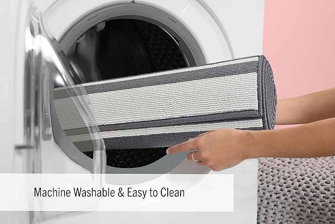Nautica β Runner Rug | Indoor Runners for Hallways and Entry Rugs| Non-Slip and Non-Skid Entry and Kitchen Door Mat| Machine Washable Entryway Carpet Rugs | 26β x 72β | Stripe Dark Grey