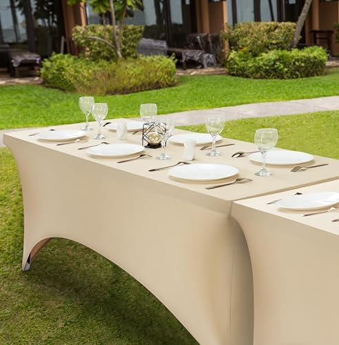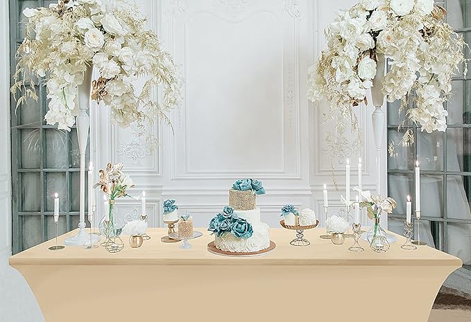 Utopia Kitchen 6FT Spandex Tablecloth [1 Pack, Champagne] 200 GSM Stretch, Fitted, Washable and Wrinkle Resistant Table Cloth Rectangle Cover for Trade Shows, Wedding, Parties [72Lx30Wx30H Inch]