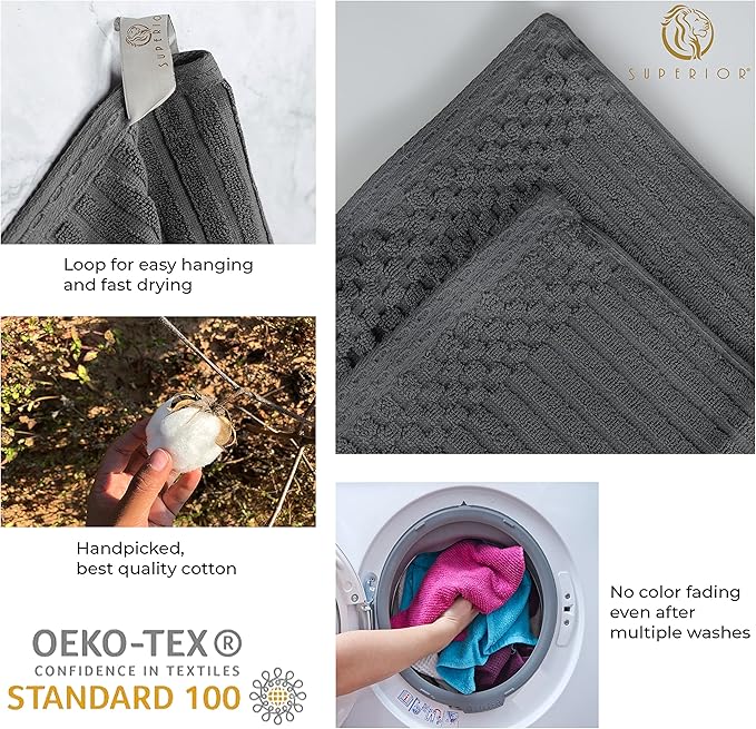 Cotton 2-Piece Solid and Ribbed Bath Sheet Set, Bath Sheets- 34" x 68", Charcoal by Superior