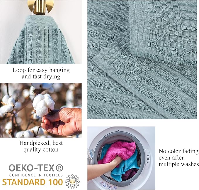 - ELEGANT DESIGN: Bath towel set includes a unique solid towel design with a checkered border and monochromatic color; each towel brings sophistication to any bathroom space; attached hanging loop allows you to easily hang your towel