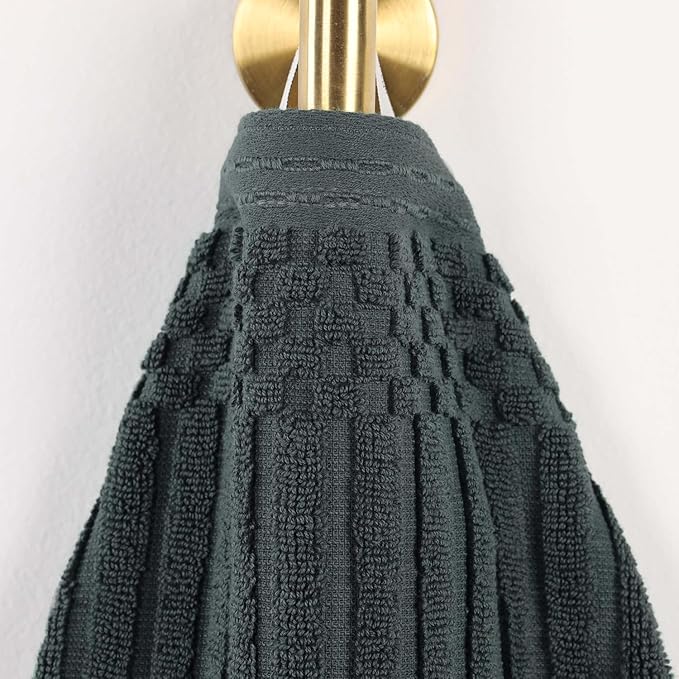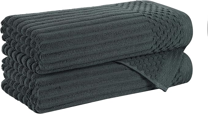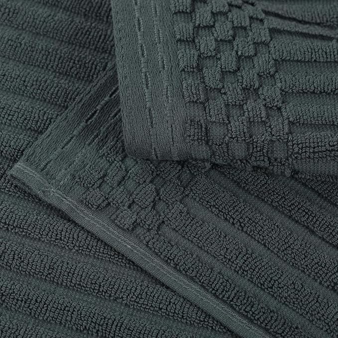 - ELEGANT DESIGN: Bath towel set includes a unique solid towel design with a checkered border and monochromatic color; each towel brings sophistication to any bathroom space; attached hanging loop allows you to easily hang your towel