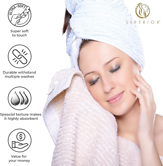 - ELEGANT DESIGN: Towel set includes a unique solid towel design with a checkered border and monochromatic color; each towel brings sophistication to any bathroom space; attached hanging loop allows you to easily hang your towel