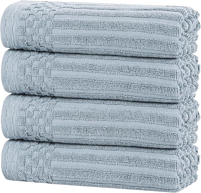 Cotton 4-Piece Solid and Ribbed Hand Towel Set, Hand Towels- 16" x 28", Slate Blue by Superior