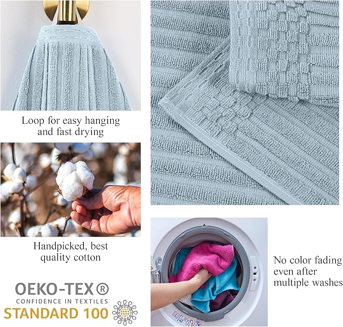 - ELEGANT DESIGN: Hand towel set includes a unique solid towel design with a checkered border and monochromatic color; each towel brings sophistication to any bathroom space; attached hanging loop allows you to easily hang your towel