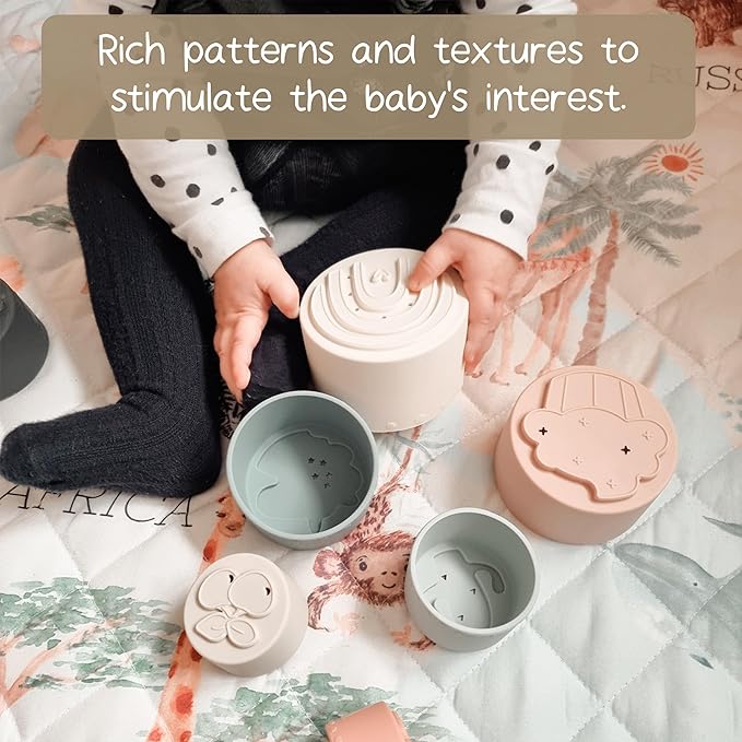 - ✨Innovative Design - 7 stackable cups have different top patterns have exquisite strokes, which enrich the touch of hand-touched patterns.7 different colors attract baby's attention and promote visual development.Stacking cups also help kids learn language and fine motor skills.