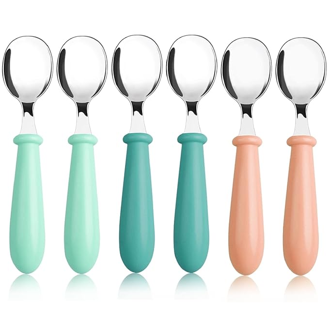 Pimoys 6 Pieces Stainless Steel Toddler Spoons, Kids Spoons with Round Handle, Toddler Utensils Children's Silverware Set, BPA Free, Dishwasher Safe