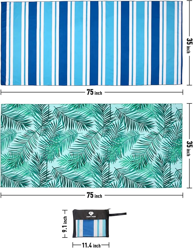 - 【Package Includes】The beach towel set comes with 2 different colors and a carrying bag. Our beach towel have many patterns for you choice,such as tropical leaves,coconut tree, stripes, mandala.