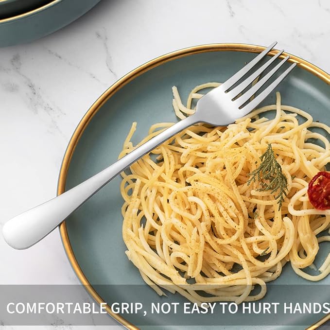 12Pcs Bright Silver Stainless Steel Dinner Forks Set, Dishwasher Safe