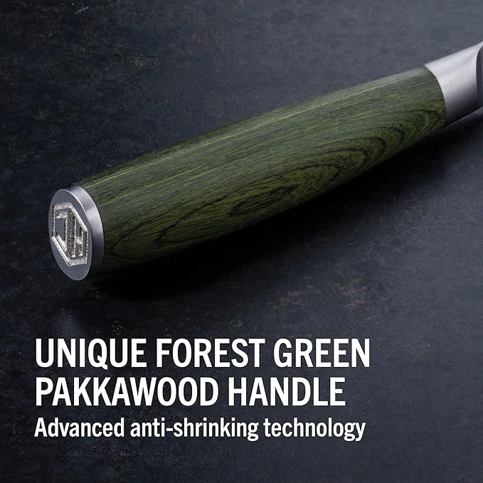 - 67 layers of Damascus steel for a harder, sharper blade that stays sharper longer. Full-tang construction for precision and control. Ergonomic pakkawood handle features anti-shrinking technology for added longevity.