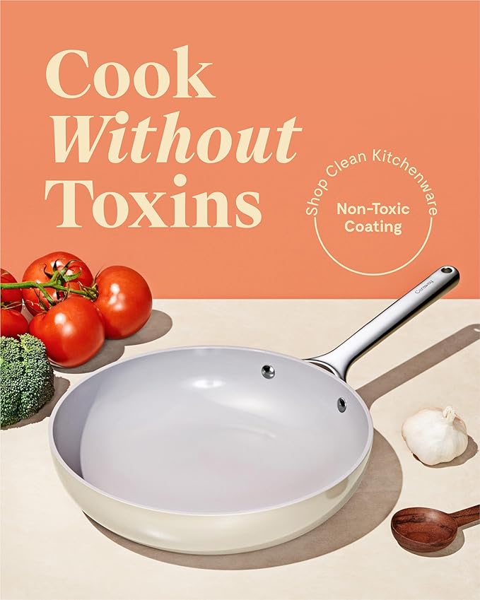- NON-TOXIC COATING: All Caraway pot and pan products are free of PTFE, PFOA, PFAS, lead, cadmium and other toxic materials that can leach into your food, making them safe for you, your family and the environment.