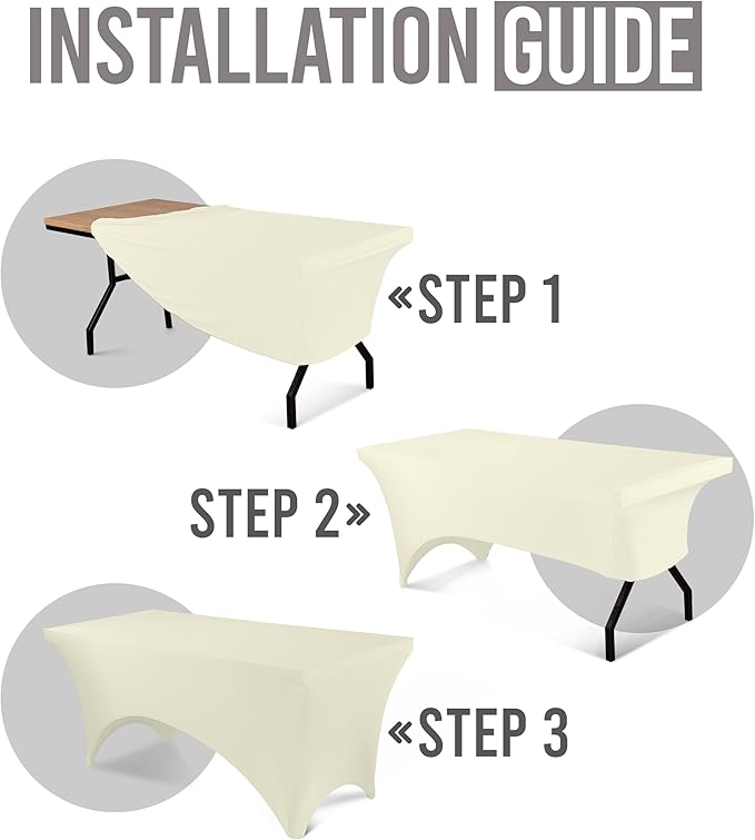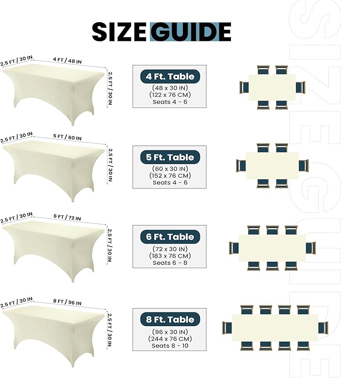 - Snug Fit with Reinforced Pockets: Designed for a 6-foot table (72"L x 30"W x 30"H), this 2-way stretch spandex cover features reinforced leg pockets to ensure a secure, professional look that won’t slip or ride up.