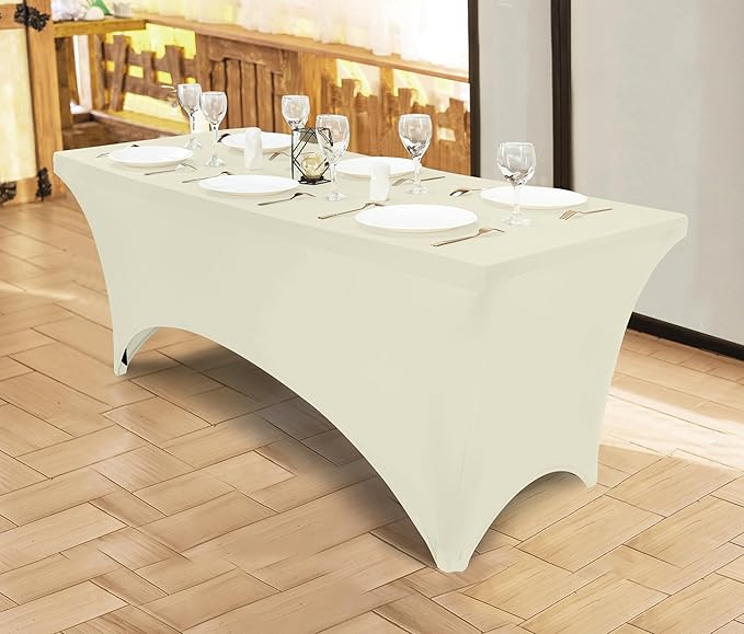 Utopia Kitchen 6FT Spandex Tablecloth [1 Pack, Ivory] 200 GSM Stretch, Fitted, Washable and Wrinkle Resistant Table Cloth Rectangle Cover for Trade Shows, Wedding, Parties [72Lx30Wx30H Inch]