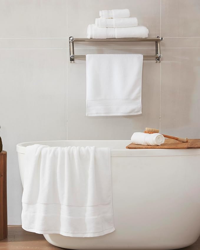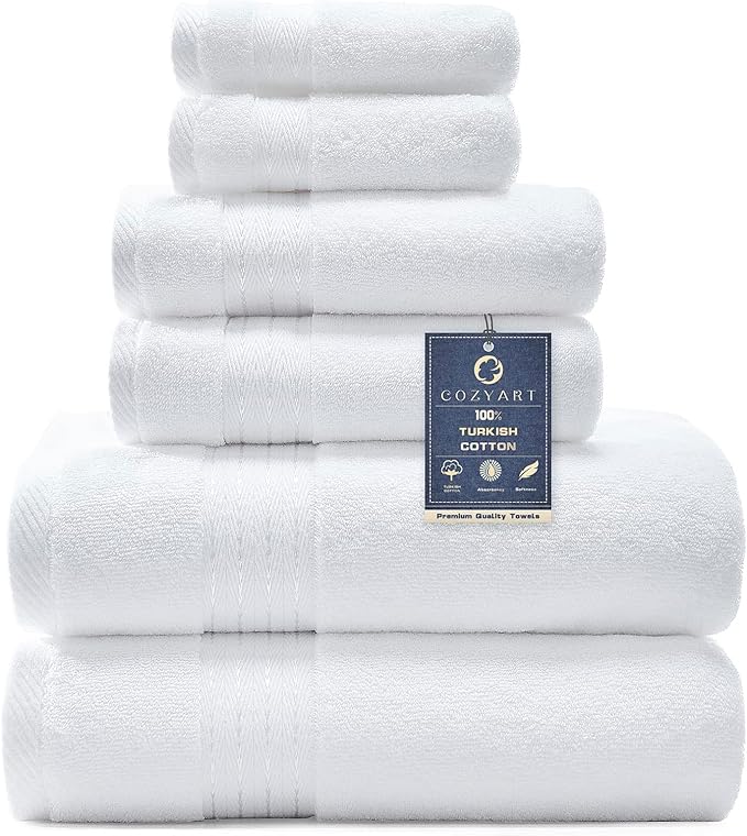 COZYART White Bath Towel Sets, Premium Turkish Cotton Large Towel Set for Bathroom, 650 GSM Luxury Bathroom Sets Pcs with 2 Bath Towels, 2 Hand Towels, 2 Washcloths, Ultra Soft and Water Absorbent