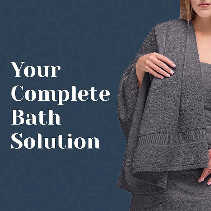 White Classic Luxury Bath Towel Set of 8 Pieces - 100% Turkish Cotton Highly Absorbent Towels for Bathroom, 2 Luxury Bath Towels 700GSM, 2 Hand Towels, 4 Washcloths, Dark Gray