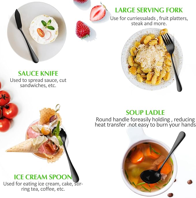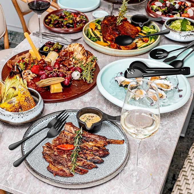 - Black Serving Spoons, Black Serving Flatware Set, Decorate Wedding Serving Utensils, Silverware Set Kitchen Mixing for Cake Server,Soup Ladle,Butter,Stirring,Tongs Ect gift for Suitable Birthday