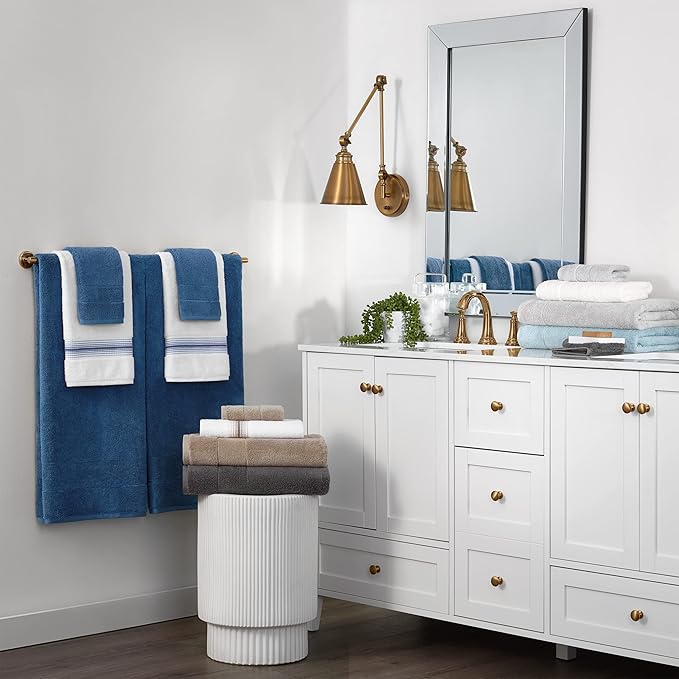 - COLORS INSPIRED BY NATURE: A serene color palette draws from seaside earth tones, water, and sky including colors - Everest White, Titanium Grey, Rhino Grey, Hummus Tan, Sterling Blue, and Copen Teal. Make a bold decor statement in any bathroom with an added layer of distinguished home textiles from this refined, all-season, color palette by Aston & Arden.