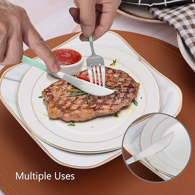 - Dishwasher Safe - Our matte silverware is made of high-quality stainless steel, and the high-quality satin-finished polished material makes the tableware not fade or fall off. Suitable for various cleaning methods. Make cleaning easy.