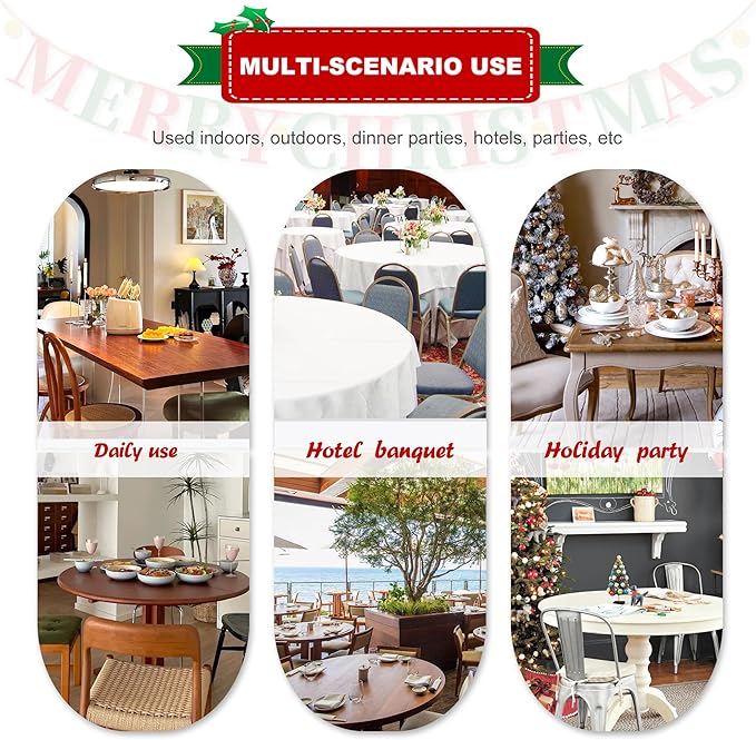 - STAIN RESISTANT & WRINKLE FREE TABLECLOTH: Featuring a fade resistant polyester fabric, our tabletop covers easily protect your tables and furniture from scratches, stains and sun rays.