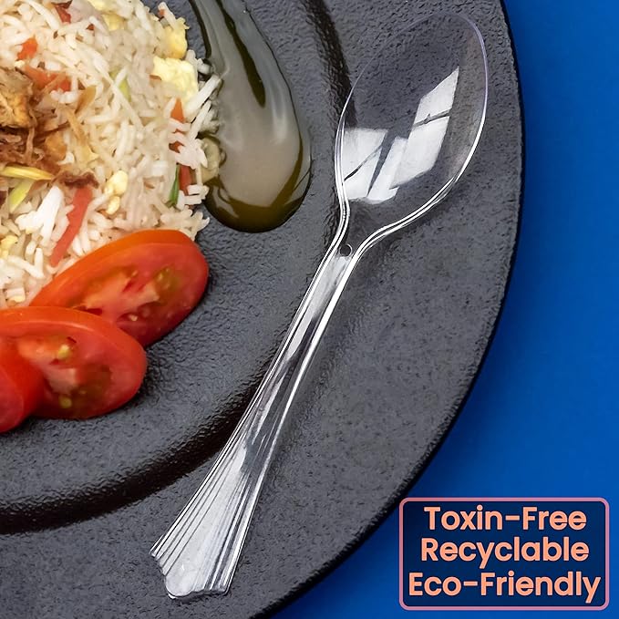 - STURDY AND SMOOTH – Specially designed to ensure that our clear plastic spoons bulk do not bend or break at weak points while in use. Edges are tested to eliminate sharpness and scratches before packing. Our plastic forks and spoons are made of premium quality plastic