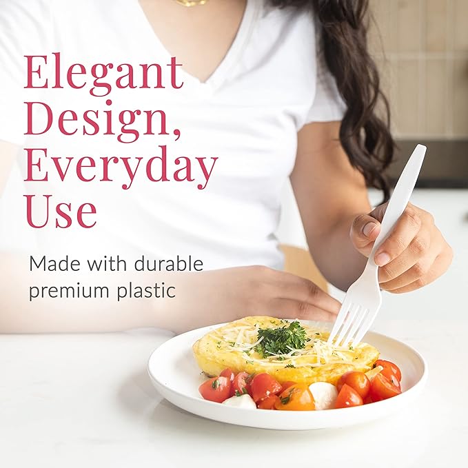 - CLASSIC DESIGN: These plastic cutlery exude class and elegance and perfectly match any table decor. Suitable for small and large gatherings and any type of occasions.