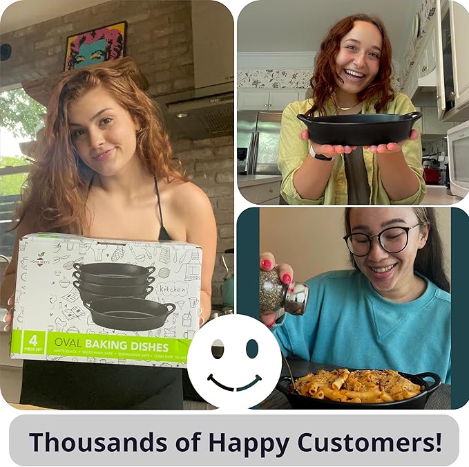 - Thoughtful Housewarming Gift – Everyone can use reusable cooking and baking pans in their kitchen which makes our 8” x 5” individual oval baking dishes perfect as holiday, Christmas, or even housewarming gifts to friends, family, or new neighbors