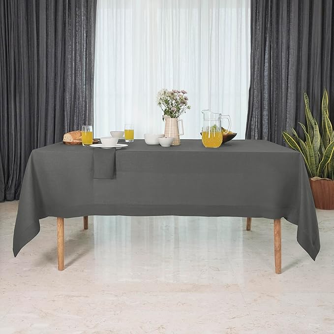 - PREMIUM EUROPEAN LINEN - This charcoal grey tablecloth is made from 100% European flax linen, not blended with cheaper materials like cotton or polyester. Pure linen is an exceptionally durable midweight, hypoallergenic (good for people with allergies) fabric which outperforms cotton in tensile strength and abrasion resistance.