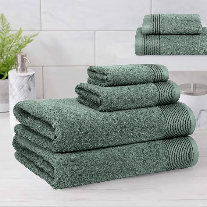 Belizzi Home 100% Cotton Ultra Soft 6 Pack Towel Set, Contains 2 Bath Towels 28x55 inchs, 2 Hand Towels 16x24 inchs & 2 Washcloths 12x12 inchs, Compact Lightweight & Highly Absorbant - Jade