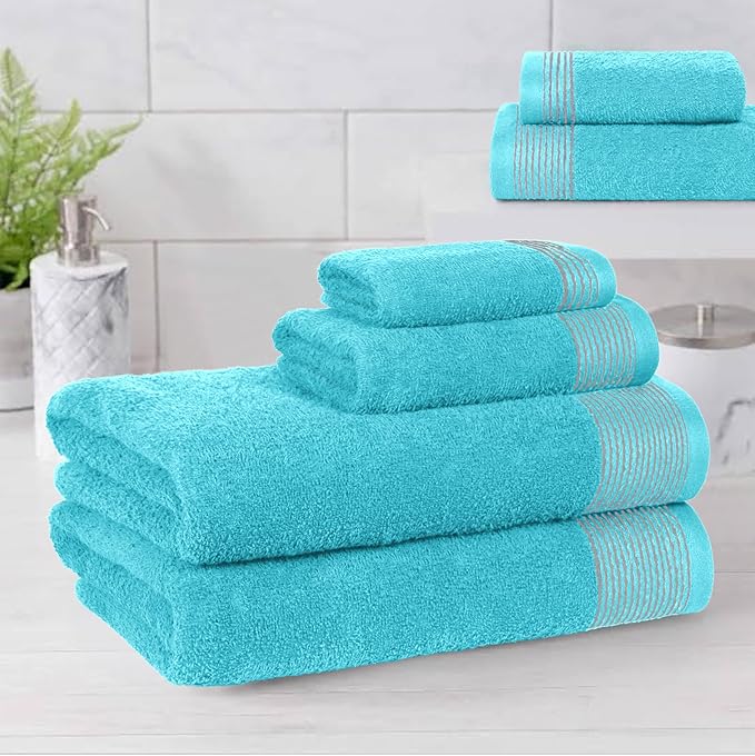 Belizzi Home 100% Cotton Ultra Soft 6 Pack Towel Set, Contains 2 Bath Towels 28x55 inchs, 2 Hand Towels 16x24 inchs & 2 Washcloths 12x12 inchs, Compact Lightweight & Highly Absorbant - Turquoise Blue