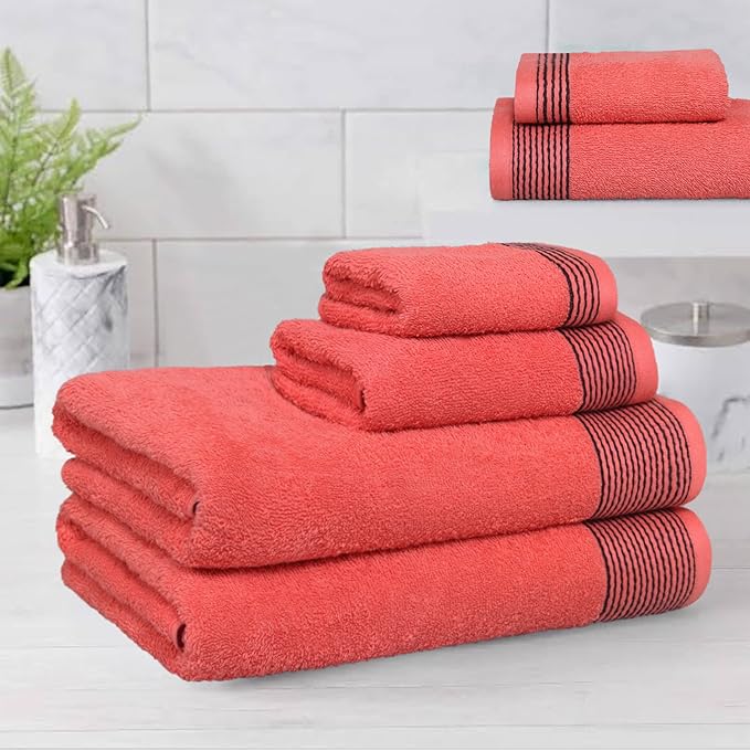 Belizzi Home 100% Cotton Ultra Soft 6 Pack Towel Set, Contains 2 Bath Towels 28x55 inchs, 2 Hand Towels 16x24 inchs & 2 Washcloths 12x12 inchs, Compact Lightweight & Highly Absorbant - Coral Orange