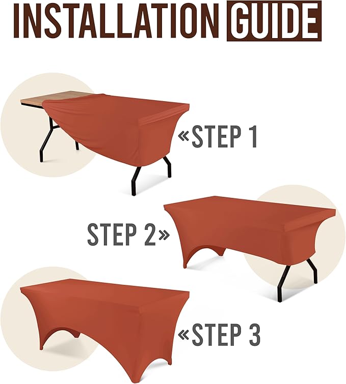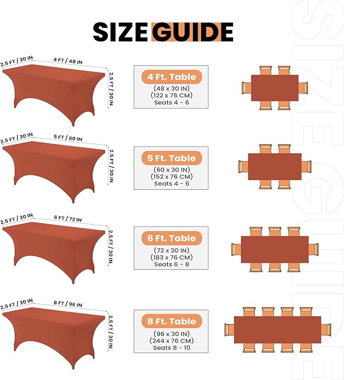 - Snug Fit with Reinforced Pockets: Designed for a 6-foot table (72"L x 30"W x 30"H), this 2-way stretch spandex cover features reinforced leg pockets to ensure a secure, professional look that won’t slip or ride up.