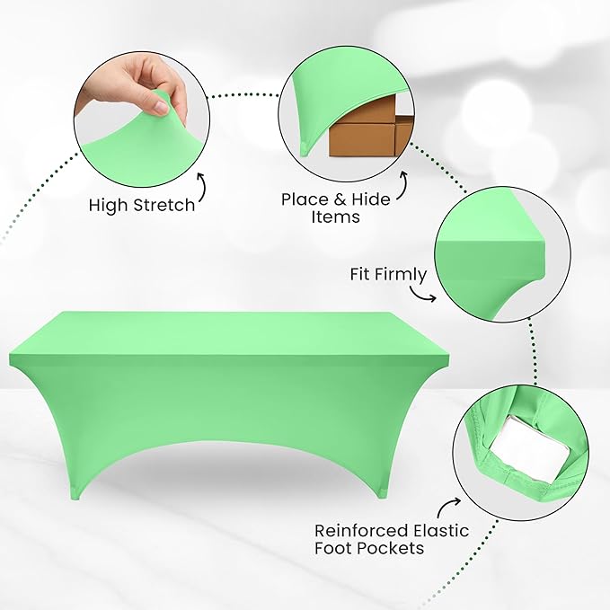 - Snug Fit with Reinforced Pockets: Designed for a 6-foot table (72"L x 30"W x 30"H), this 2-way stretch spandex cover features reinforced leg pockets to ensure a secure, professional look that won’t slip or ride up.