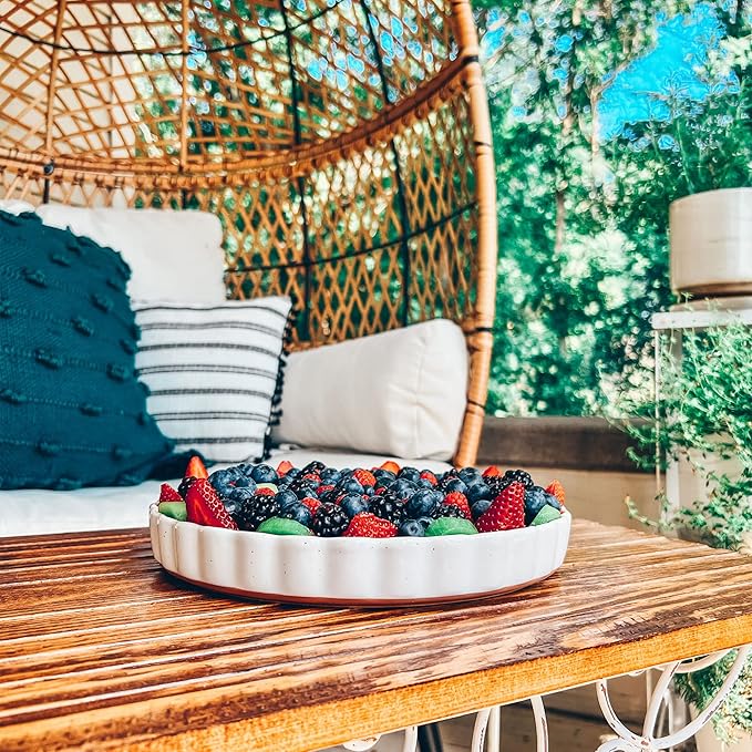 Mora Ceramic Tart Pan, 9.5 Inch Large Porcelain Baking Dish for Tarts, Quiche, Pie, Flan etc. Fluted Ruffled Edge, Oven, Microwave, Freezer, and Dishwasher safe - Great Gift For Bakers - Vanilla White