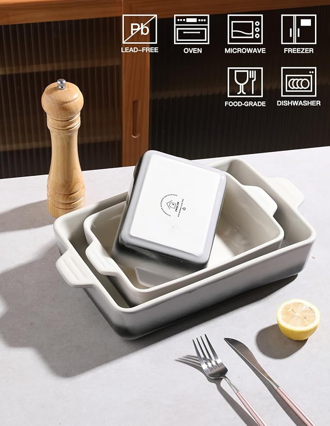- A Perfect Gift Choice: Looking for a thoughtful gift for a housewarming, wedding, or any special occasion? Our porcelain baking dishes are an excellent choice. Their elegant design, smooth glaze surface,and bright color, combined with their functionality, makes them a practical and stylish addition to any kitchen. Surprise your guests with this casserole dish set and let them enjoy the joys of baking and cooking in style.