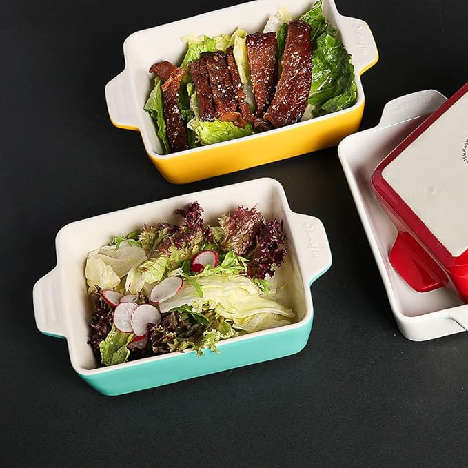 - 【Stylish Rectangular Baking Dish】The rectangular baking dish is equipped with a double handle design for easy food transport from the oven to the table. It is also a charming decoration in your kitchen and dining table which may impress your guests!