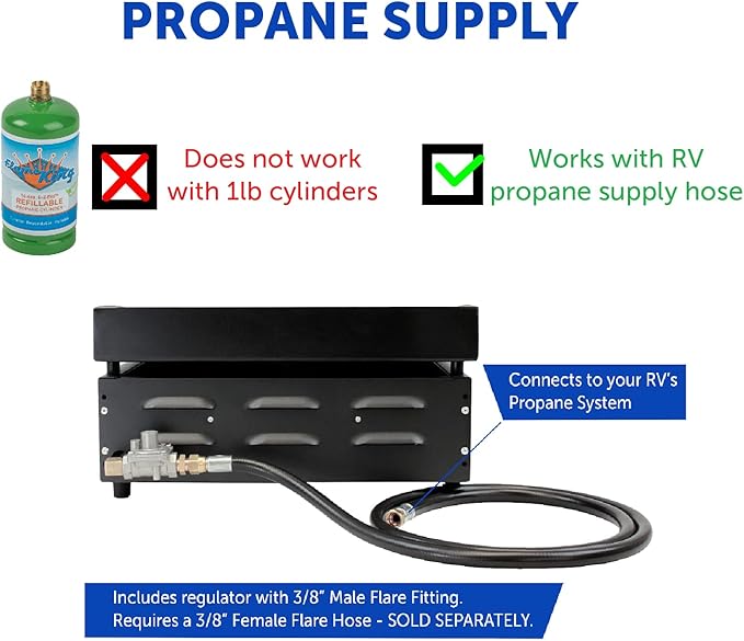 - COMPLETE GRILLING STATION - This incredibly convenient motorhome compatible gas griddle w/ 12,000 BTU includes an adjustable flame controller