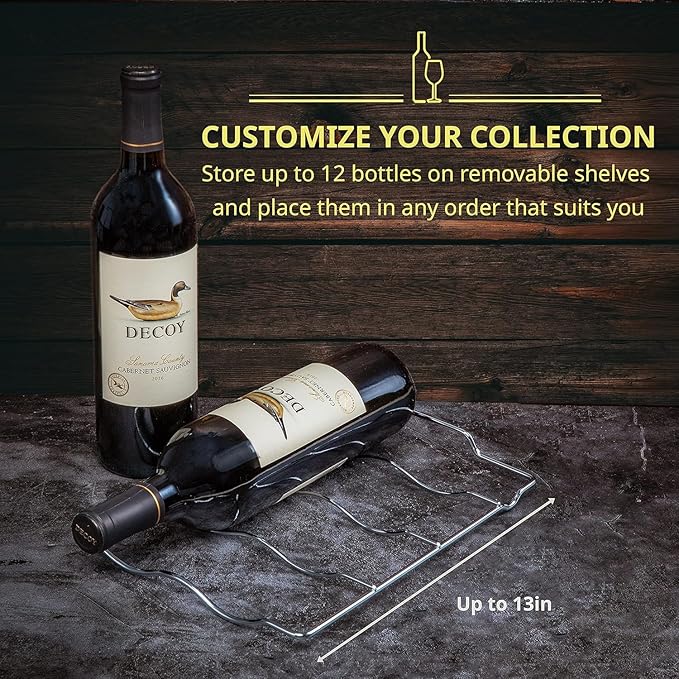 - REMOVABLE RACKS & EASY-TO-USE TOUCH CONTROLS - Rearrange the shelves to accommodate varying bottle sizes. From pinot noir to champagne, you can be sure your collection ages comfortably. Easily adjust the temperature and turn on the light by tapping the digital display, then easily lock in settings with the lock button. The bright LCD display lets you view the temperature, even in the dark.