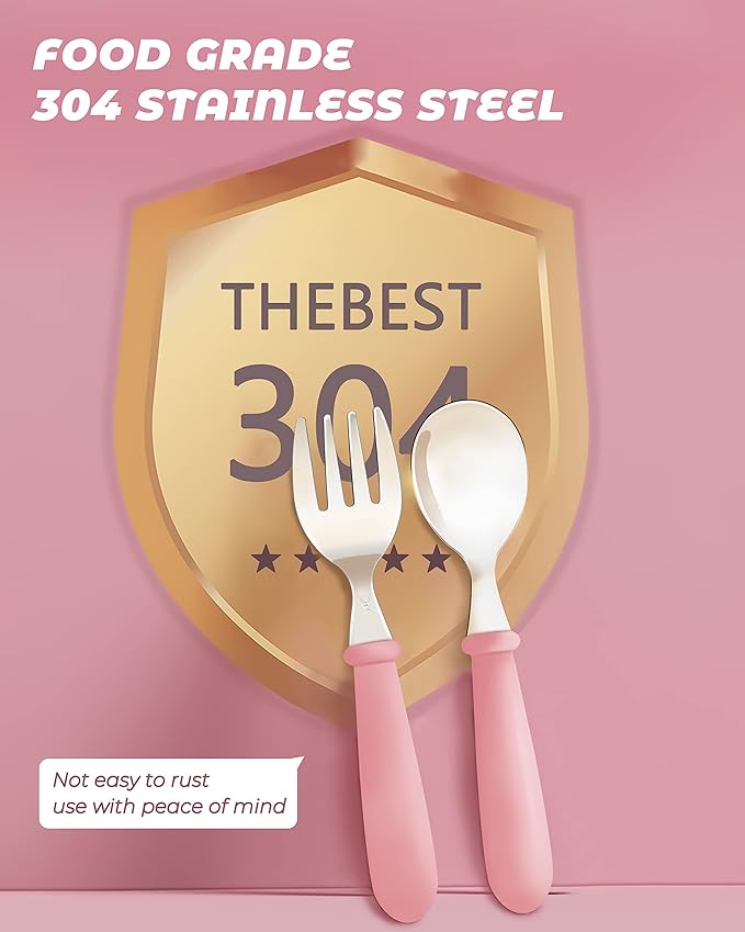 DF DUALFERV 10 pcs Toddler Utensils, Stainless Steel Toddler Silverware Set with Round Handle, Baby Forks for Self Feeding, 5 Forks and 5 Spoons