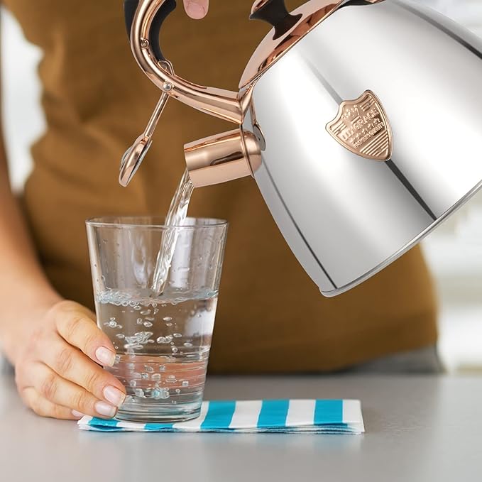- Perfect Whistling Sound of Teakettle: This tea kettle for stovetop has a tight-fitting lid keeps steam in the hot tea kettle for rapid heating, and realse pleasant whistles sound when water reaches a boil, Loud enough to alarm you when you busy in the next room.