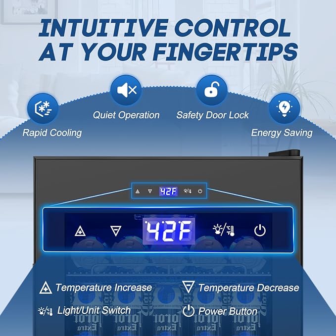 - 𝐔𝐩𝐠𝐫𝐚𝐝𝐞𝐝 𝐂𝐨𝐧𝐬𝐭𝐚𝐧𝐭 𝐓𝐞𝐦𝐩𝐞𝐫𝐚𝐭𝐮𝐫𝐞 𝐓𝐞𝐜𝐡𝐧𝐨𝐥𝐨𝐠𝐲 - Our drink refrigerator with glass door has a new design operation panel on the front door, offering variable temperature options (37°F to 65°F) to meet your needs for storing different beverages. If it is unplugged or powered off, its memory function will automatically restore the preset temperature of the beverage cooler. It is also designed with an additional temperature sensor for auto-defrost mode
