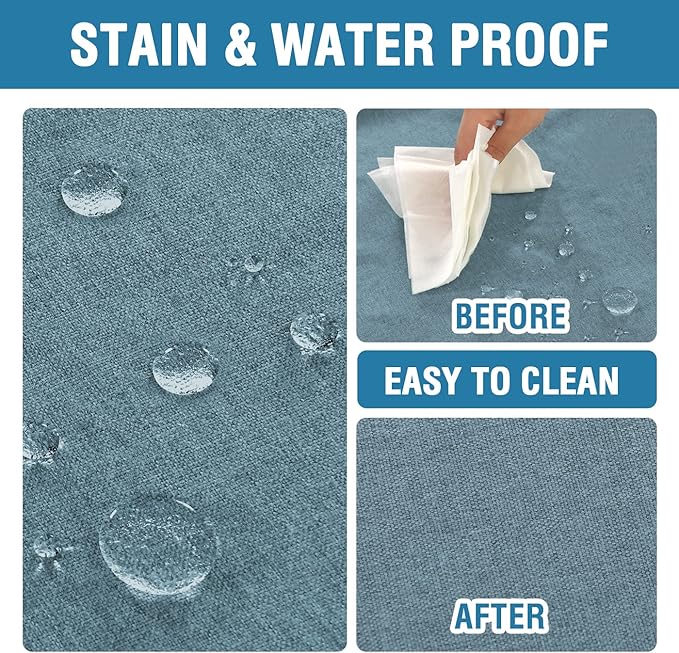 H.VERSAILTEX Linen Textured Tablecloth 54 x 80 Waterproof Decorative Table Cloth Spill-Proof Linen Look Cover for Party Table Extra Soft and Thick Fabric Wrinkle Free, Heather Stone Blue