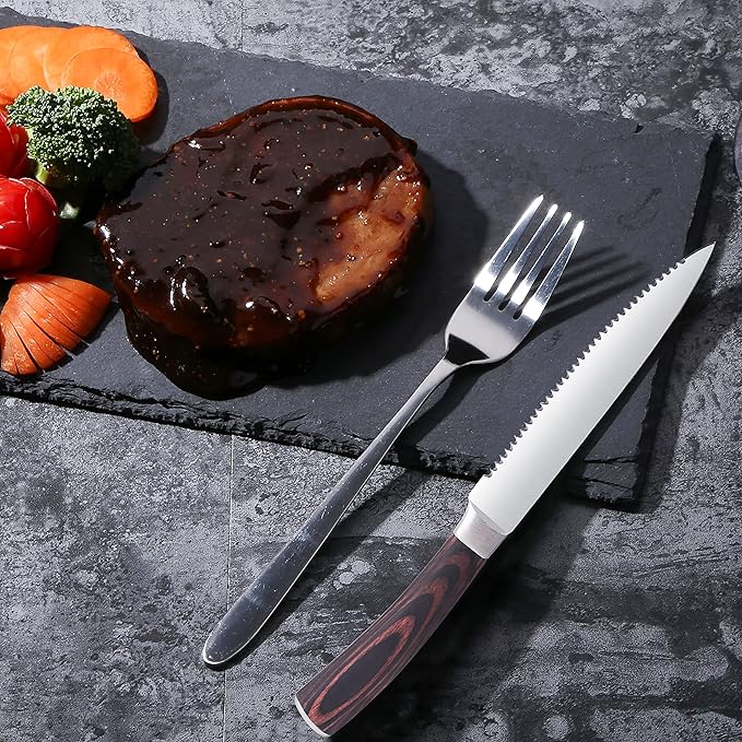 - ★High-End Craftsmanship: Exquisitely designed with premium materials & super-precision-crafted. LUVCOSY Steak Knife Set sports exotic Pakkawood handles, sanded with a smooth finish for a polished look.