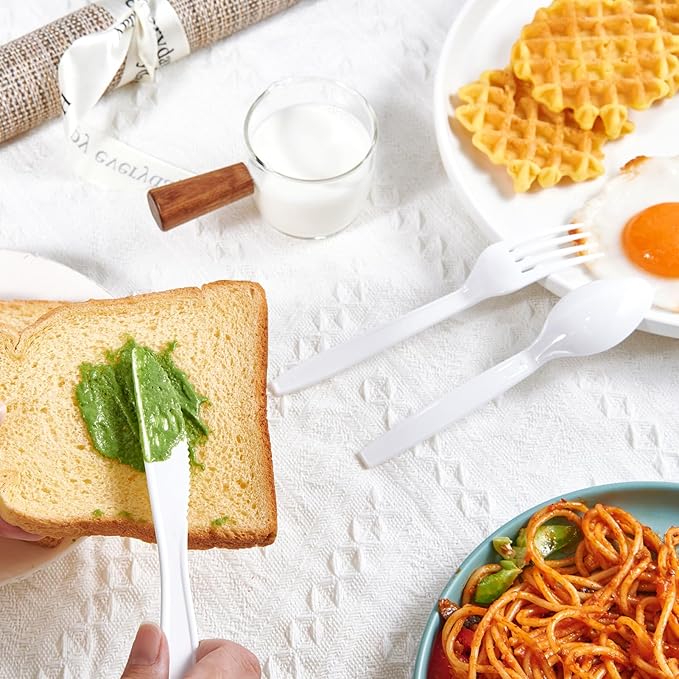 - Wide Occasions: If your theme for the party, wedding, or BBQ is a white plastic forks ,plastic Knives and spoons bulk, then our heavy-duty plastic forks bulk will work really well. Our disposable plastic cutlery sets will be the shining star no matter where they are found.