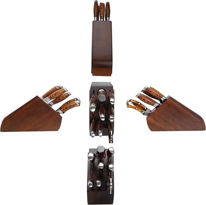 MSY BIGSUNNY 9pcs Knife Block Set, German Steel Kitchen Knife Set with Bone Chopper, Precious Pakkawood Handle for Chef Knife Block Set