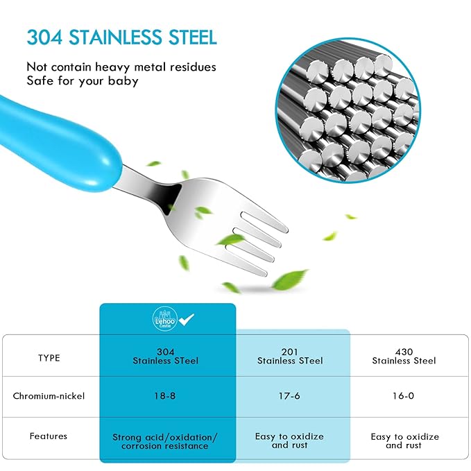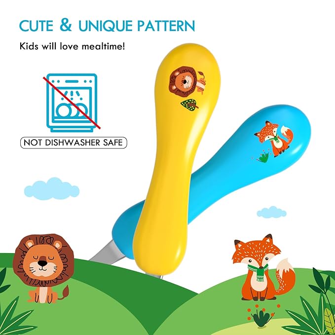 - SAFE TODDLER UTENSILS SET: Made of durable food-grade stainless steel, all non-corrosive, BPA-free and easy to clean (NOT dishwasher safe to avoid color loss)