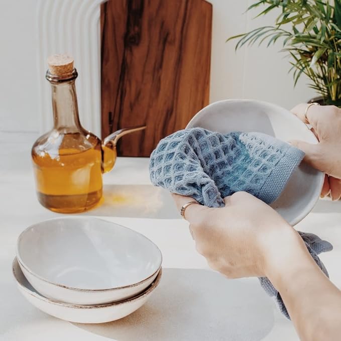 sea me at home Waffle Washcloths Set, 100% Turkish Cotton (Denim)