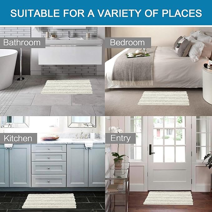 H.VERSAILTEX Bath Mats for Bathroom Non Slip Thick Chenille Striped Bath Rug Absorbent Fluffy Soft Shaggy Rugs Washable Dry Fast Plush Mats for Indoor, Bath Room, Tub - 17" x 24", Cream
