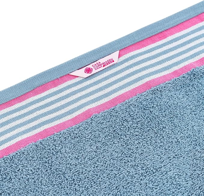 CASA COPENHAGEN He & She 6 Pieces Towel Set- Dusty Blue + Pink, 550 GSM 2 Bath Towel 2 Hand Towel 2 Washcloth, Designed in Denmark Made of Soft Egyptian Cotton for Bathroom, Kitchen & Shower