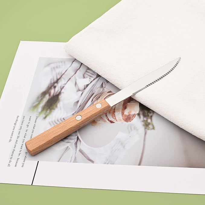 - Excellent Material - The flatware set is made of high quality 304 stainless steel which is food grade material and healthy for everyday use. Rust resistant and durable for years to come. Natural wooden handle with smooth design, which is easy to grip.