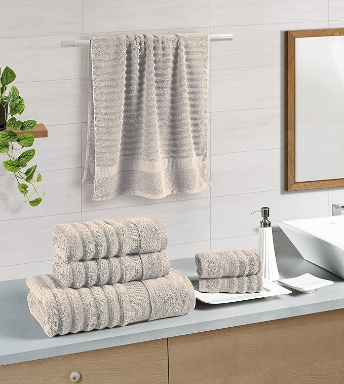 - Luxury Ribbed Bath Towels Set : Bring the hotel spa vibe home with our 600 gsm 100% premium cotton 6-piece solid highly absorbent bath towel set. Boasting a jacquard construction, these turkish bath towels not only feel soft against your skin, but they're also highly absorbent for convenient and comfortable drying.