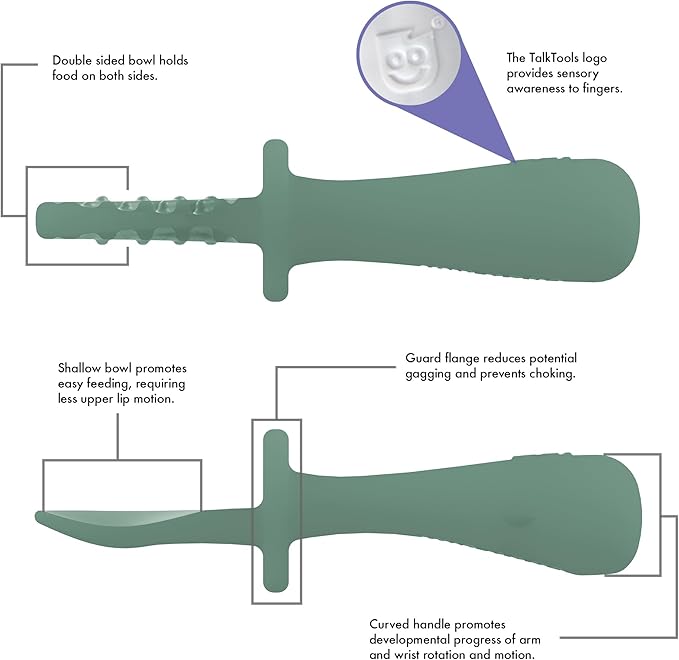 - TALK TOOL AND ANTI-CHOK GUARD: Talk tool in our product act as an orientation guide designed to get your child feeding on their own and guard flange reduces potential gagging and prevents choking.